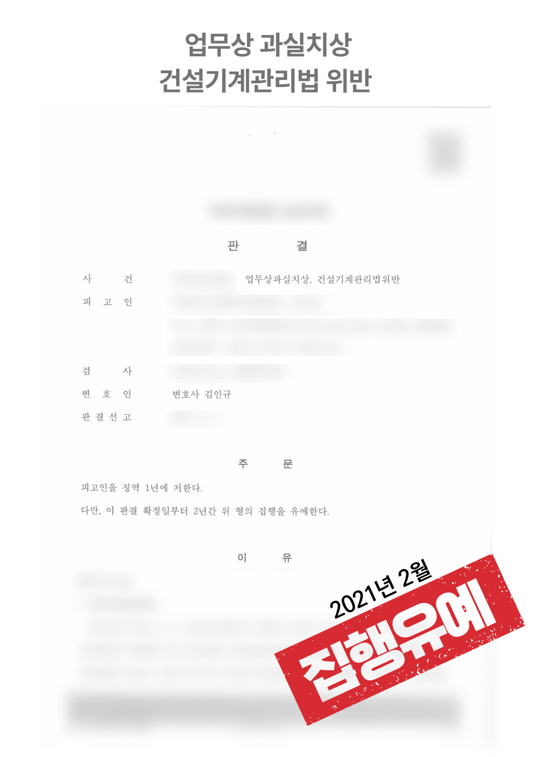 업무상과실치상 및 무면허 조종 ‘집행유예’ 사건 배경하차 작업자가 코일 전도 위험을 확인·방지할 주의의무를 위반했는지, 그로인해 부상이 발생했는지와 면허 없이 건설기계를 조정한점이 핵심 쟁점법원 판단법원은 의뢰인이 분할 밴딩 여부 확인·지지대 설치 같은 안전조치 없이 밴드를 자르게 해 코일이 넘어졌다고 봤으며, 면허 없이 건설기계를 조종한 점은 위법이라 판단했습니다.사건 결과집행유예 2년 whyseoulmain2026-01-30T10:12:16+09:002026년 01월 30일|성공사례|