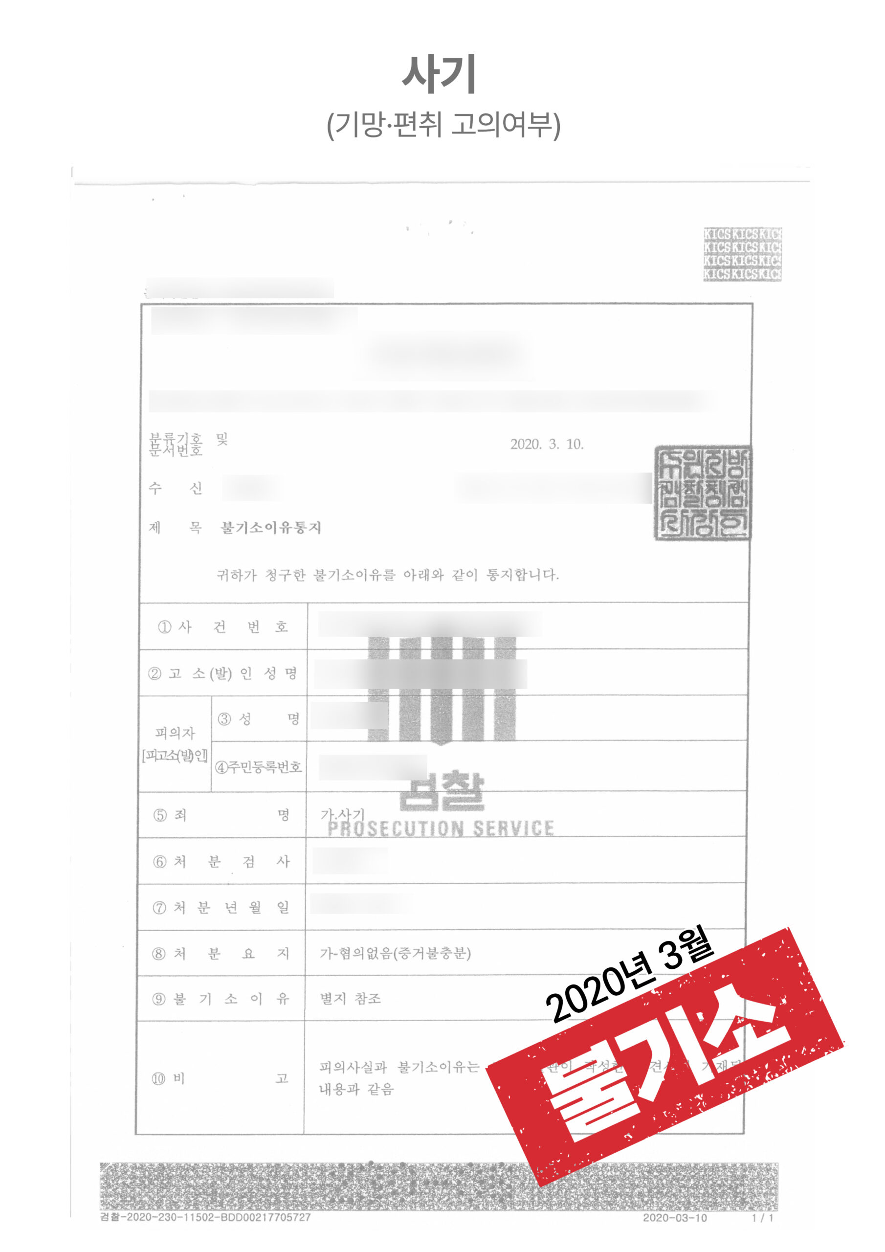 불기소(혐의없음/증거불충분)